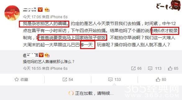 今天下午,某知名媒体人先是发了一条微博抱怨艺人不靠谱。