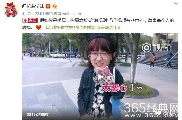 看看《拜托啦学妹》中路人的回答,就知道娱乐圈的各种坏风气对年轻人的腐蚀,哦不,毒害!那些认同潜规则的童鞋,回家面壁去,三观一定要正好不好!