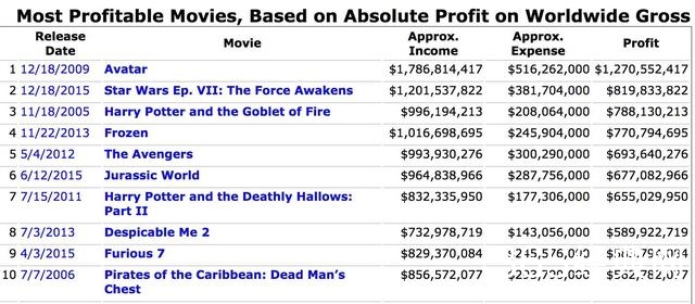 《速度与激情7》也是好莱坞影史利润绝对值排名第9的超级大片,一共为环球赢得了5.83亿美元的利润。