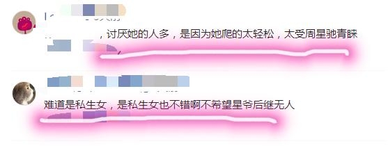 也有人说她这么不招人喜欢大概是因为她爬的太轻松了,一出道就是“星女郎”,加上看着好像没有什么特别,才会导致这么多人不认同她吧!甚至有的网友说林允该不会是星爷的私生女吧?不然为何对她关照有佳。