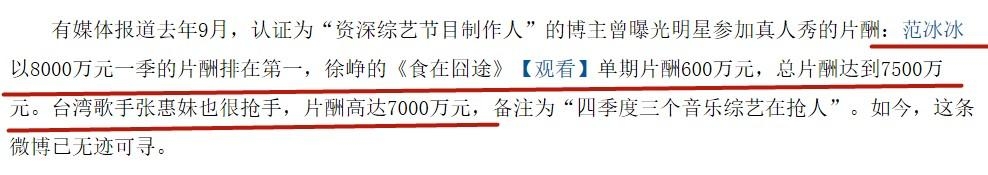 当然除了年轻偶像,还有许多真人秀演出的片酬也不低,有媒体报道,某博主曾曝光明星参加真人秀的片酬,高到炸舌。