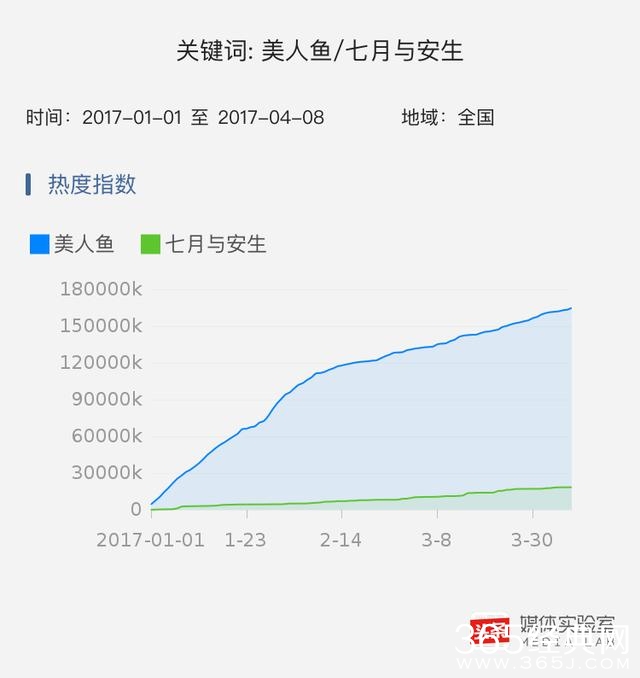 据今日头条《媒体实验室》近三个月数据,竞争“最佳电影”的《美人鱼》热度高于《七月与安生》。