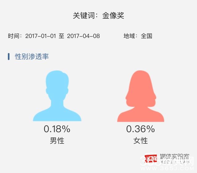 关注金像奖的女性居多,男女比例为1:2。