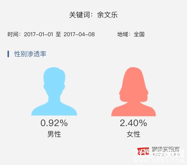 数据显示,喜欢余文乐的女性明显多于男性,男女比例约1:3,并且多为18-30岁的年轻人。