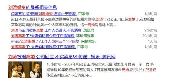 近日,刘涛婚变的传闻是传的沸沸扬扬。都说这谣言止于智者,但是面对着各大媒体的娱乐头版头条,还是有一些人是真信以为真了,把刘涛夫妇的恋爱闪婚往事都扒出来例证传言的真实性。媒体求证刘涛的宣传总监,得到的回复简单明了,“不实消息”,更是表示:“不传谣!不信谣!”。