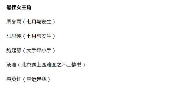 也欢迎各位小伙伴积极参与预测,或拍砖小扒,说出你认为的最佳女主角哦~~