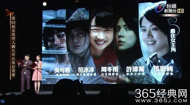 但是咧,小扒还是那句话,回望去年第53届台湾金马奖,影后入围名单——许玮甯《红衣小女孩》、范冰冰《我不是潘金莲》、周冬雨《七月与安生》、马思纯《七月与安生》、吴可熙《再见瓦城》。