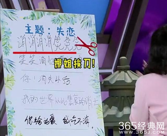 在这环节有三位评委需要评判出写的最不好的一句!第一局谢娜诗句被剪!