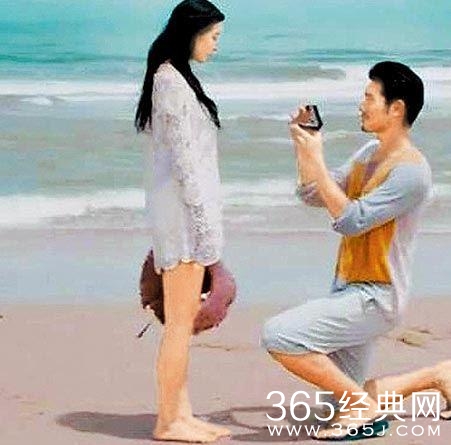 在影片中,原本这被求婚的画面很温馨,不过这双大脚实力抢镜,目测林志玲的脚与男星的脚差不多。