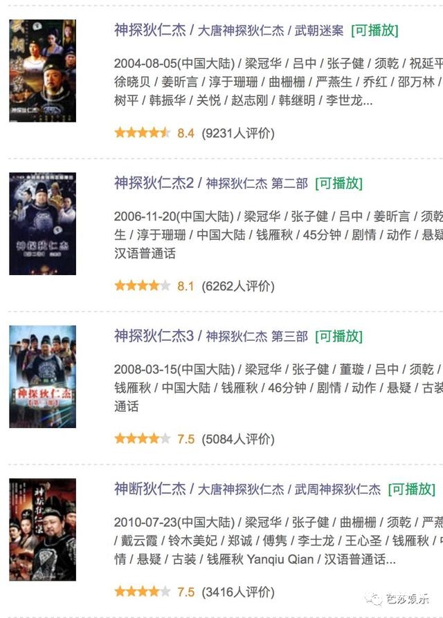 当初在央视播出了整整四部的《神探狄仁杰》,不仅收视很好,豆瓣上的人气也很高,部部都是高分!
