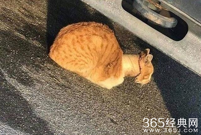 直到一位有心的路人才发现不对。猫咪好像很没用精神的样子,趴在路上不怎么动弹。他走近了才发现原来猫咪脖子上套着一个胶带筒,头部和身体被胶带筒磨得皮开肉绽。眼看着猫咪就要不行了。