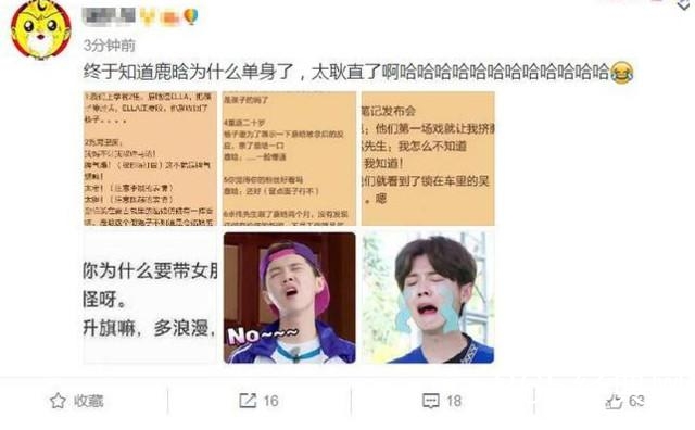 热心网友晒图说:“终于知道鹿晗为什么单身了,太耿直了啊哈哈!”另一个网友回应说:“人家不是不浪漫 只是对你不浪漫 傻孩子洗洗睡吧!”更有别的网友一本正经的胡说八道:“他单身?听说孩子都有了O(∩_∩)O~”(PS:这位朋友你这个样子会给鹿晗越抹越黑的!)