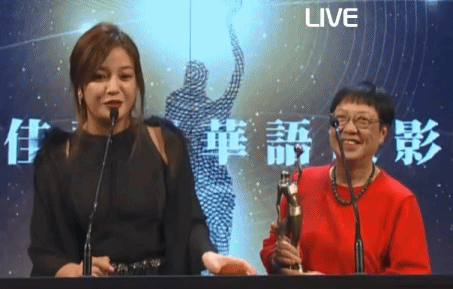两个人颁奖也好认真,把五部电影的大致内容都说了一下,最后读出获奖影片名字后,主持人郑中基突然说获奖人没有到场,请赵薇把奖杯颁给许鞍华,可以说是很突然了,赵薇这时候机智救场:“我突然想起自己也拿过最佳两岸华语电影(《致我们终将逝去的青春》),我也没敢来,这位导演也一样啊。”