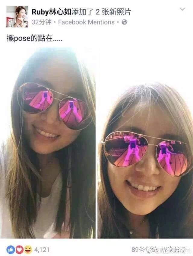 林心如po自拍,霍建华在老婆的墨镜反光中出现,可怜摆好pose的他成了被老婆忽悠的对象
