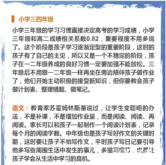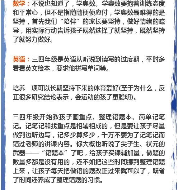 最近和不少家长聊到孩子的学习问题,有很多小学家长反映,孩子的成绩很差,但是又不知道该如何帮助孩子复习,该从哪些方面辅导孩子。对于么有经验的家长,往往不是帮孩子分析原因,寻找办法,看着孩子成绩差,就送补习班。其实每个阶段都有学习的重点,在小学时期,家长最应该培养的是孩子的思维方式和习惯,而不是只看成绩。因此,鉴于很多家长对这一问题有所疑惑,我根据这些年的教学经验,总结了一份小学家长帮助孩子学习的要点,希望可以帮到家长和孩子们。