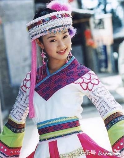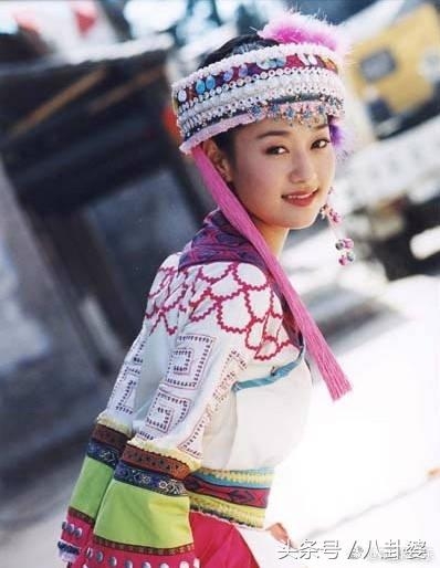 14年前的马伊琍穿着少数民族衣服拍的照片,照片中的马伊琍活泼又有韵味,笑起来露出小虎牙特别可爱。