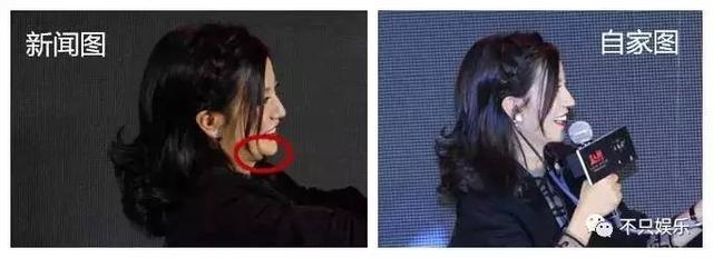 同样的活动照片,媒体放出来的图片跟赵薇工作室发出来的图片,也是少了一副双下巴。