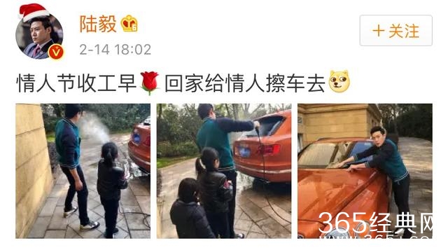 陆毅在2月14日发的一条微博被细心的网友翻出,图中的他在洗一辆宾利车