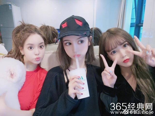 网红韩安冉爆照与另外两个好朋友一起玩合照,网友看照说:你们三个的眼睛一模一样!