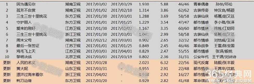 2017年所有省级卫视电视剧排名更新,第一的竟然是它