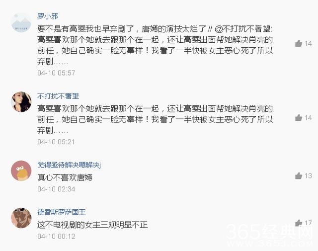这部电视剧非常明显,大家更加喜欢那个耍二卖萌的高雯,喜欢那个真性情萌萌哒的高雯。而唐嫣在剧中饰演一个人设很绿茶的米朵,所以为她招黑无数。记得有两集因为高雯不在了,收视率跌破一,看来关众并不接受没高雯的克拉恋人啊!