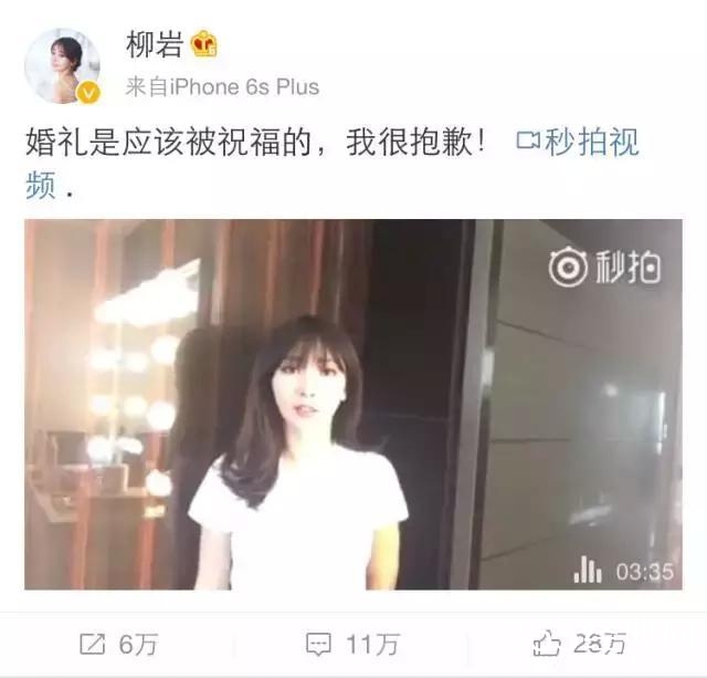 事情发展过后,伴郎团没道歉,包贝尔夫妇也没出来道歉,已经很OVER了,结果是柳岩出来道歉了……