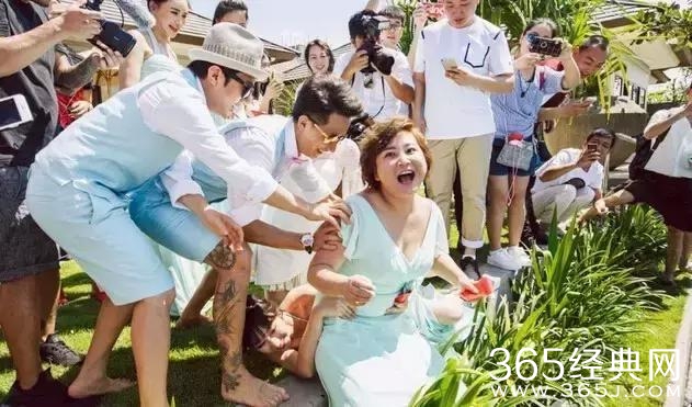 婚礼仪式结束后,她差点就被五名伴郎拖入泳池中,还好在池边被贾玲救下,注意看贾玲腰上的那双胳膊,是柳岩的……