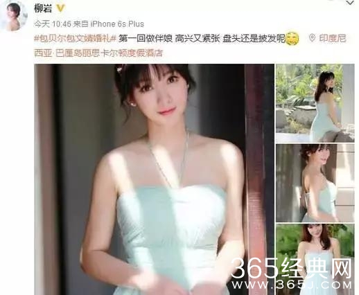 柳岩在微博中写到自己第一次做伴娘,高兴又紧张,盘发还是披发。