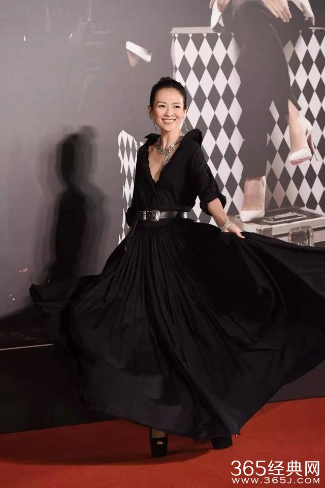 抱着看热闹不嫌事大的心想看看今年妖怪们的车祸现场,结果,居然阖家欢乐一团和气~当了妈的章子怡一袭Alberta Ferretti黑裙,珠宝点亮了礼服的沉闷,加之强大气场,要是换别人穿还真Hold不住这身大黑袍。