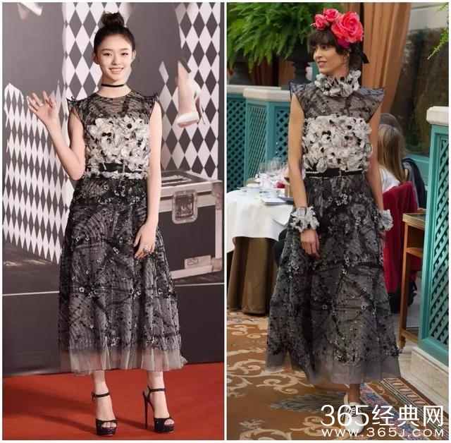 小花林允在红毯上存在感略低。不过实在是Chanel家亲侄女,还未上架的高级手工坊系列已空运上身~