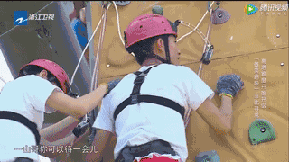 在最危险的攀岩区,小凯为了帮山哥保存体力,紧紧抱住了山哥(噢不我的少女心!