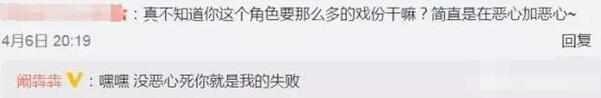 这是不是能侧面说明点什么问题呢?有网友怀疑阚犇犇在利用职务之便给自己加戏,对此阚犇犇在微博上怒怼网友回复此事证明自己清白:没恶心死你就是我失败。