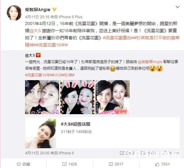 昨天大S和柴智屏发微博称要重拍《流星花园》啦,网友纷纷喊话让原班人马出演!