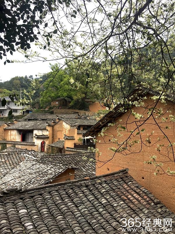村落整体坐东朝西,建在一个山势的凹陷处,所以从外面进来一路是看不见它的。几十幢土木架构的清代民居,沿着山坡错落有致地向上延伸,在视野中展现出一个巨大的立面,属于典型的阶梯式村落,也难怪被称为“江南的布达拉宫”了。据说这里已经有三百多年历史,斑驳而充满岁月感的黄土墙,配上瓦片的灰墨色,气势壮观而朴实。也让人不禁感触,正是由于当初村落设计者的隐秘布局,加上交通不便,才让这个藏在大山深处的古村落得以完整保存吧。