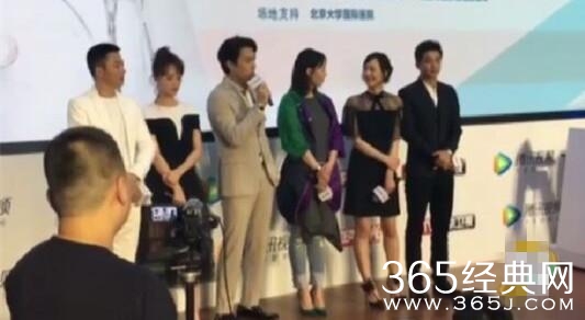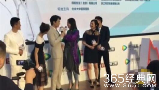 站在一旁的其他演员都好奇的看过来,老干部都吓一跳!连下面的记者也看到了,表示真的有。是哪个粉丝这么大胆,趁机偷了个吻,哈哈。
