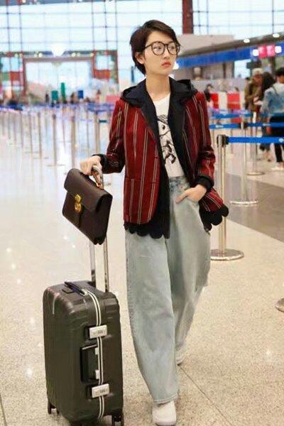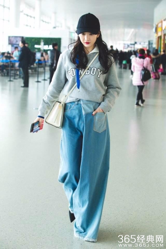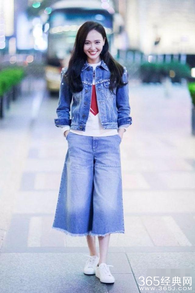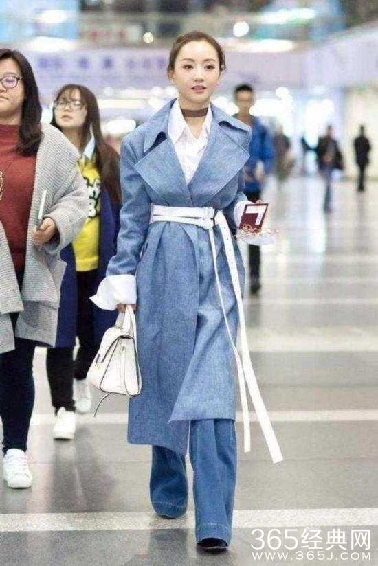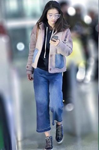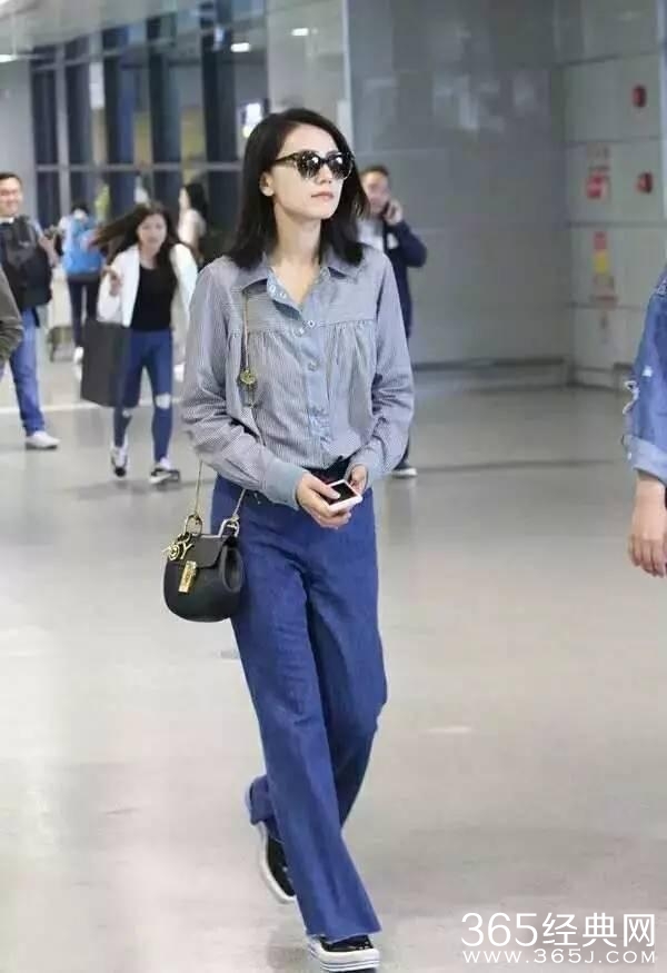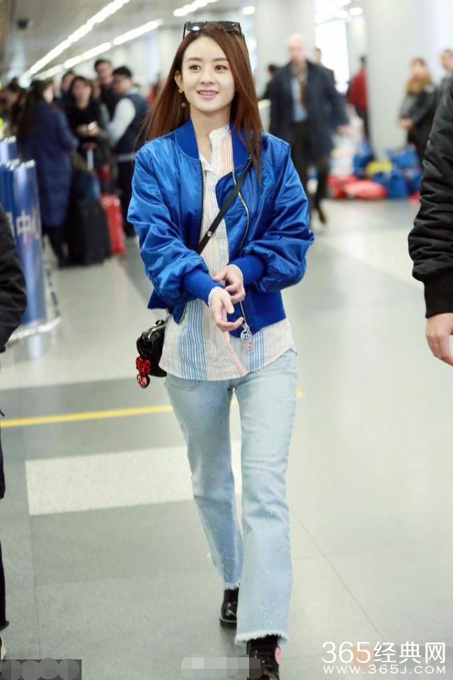 第九、赵丽颖 一件蓝色的休闲装,里面搭配了一件条纹衬衫,一头乌黑的长发,一条蓝色的牛仔裤,但是这腿真的是有够短。