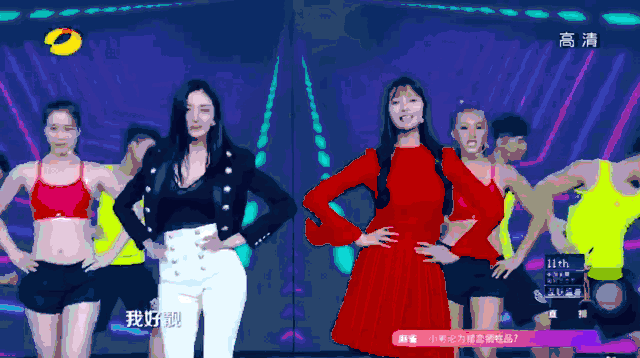 同样情景还有张天爱和沈梦辰的铜矿。还记得去年金鹰节互联盛典,两个人一起教大家跳办公室减压操吗?且不论歌怎么样,对口型还对不上就很尴尬了。但是,我发现好像哪里不太对。乍一眼看上去好像没什么不对,但是把视线往下移动就暴露了。
