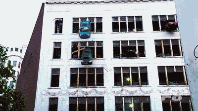 要知道,这可不是CG特效技术。这都是真车坠落的实景拍摄。