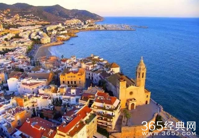 风光秀丽的锡切斯小镇