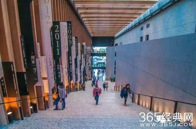 完全不符合商业设计常规的步梯,如今已经成了文艺青年的摄影圣地,旁边有不少文化符号的标语。