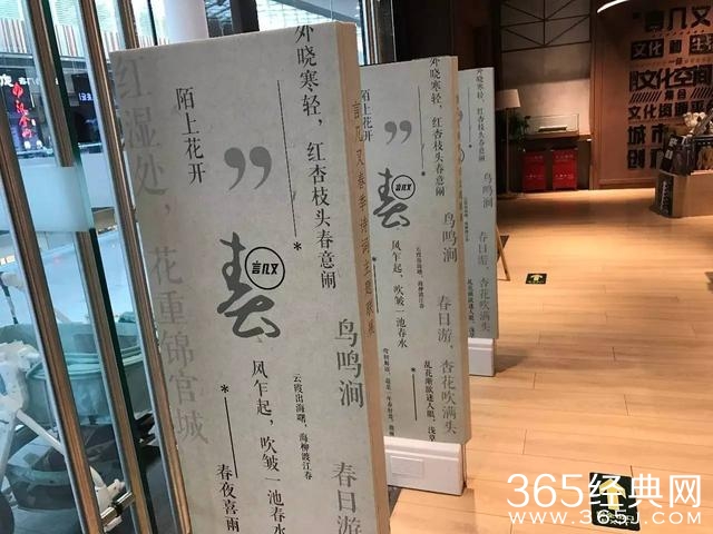 目前正值言几又春季主题诗词联展,相关书籍摆在入口显眼处,空间装饰上也有做了相应布置。