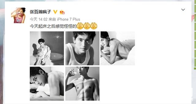 原来张哲瀚接拍了一组肌肉写真照,并在微博里放出来,给粉丝发福利。