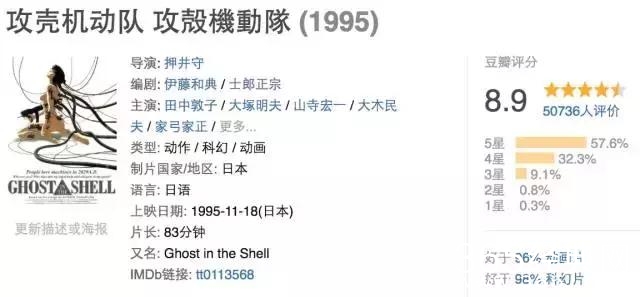1995年这版[攻壳],在豆瓣上仅有5万多人点评,而今年这部真人版,上映不到1周,就有了4万8千余人点评。