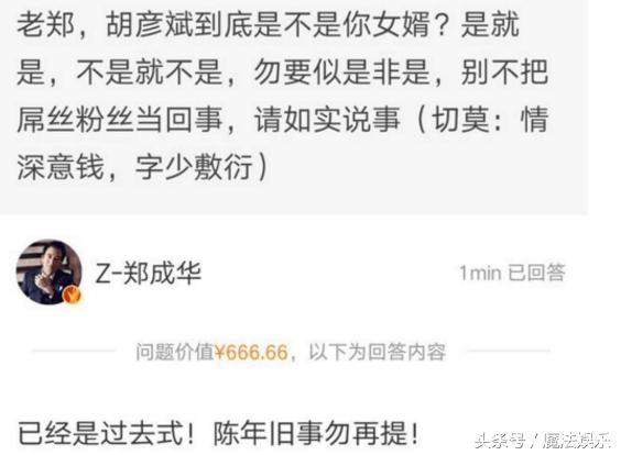 之前也有网友提问郑成华有关郑爽的问题,但是每次的回答都是模棱两可,跟没回答一样,这个网友倒是挺聪明。本以为郑爽爸爸会再次兜圈子,没想到这次竟然很麻利的回答:已经是过去式,陈年旧事勿再提!看来郑爸爸对胡彦斌可不是一般的讨厌啊!