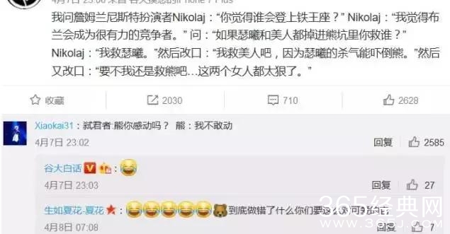詹姆被问到谁会登上铁王座?最有意思的梗是弑君者如果在瑟曦和美人还有熊之间会如何选择,詹姆居然两次改口!