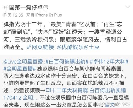 这几天白百合出轨事件火热程度仅此于上一年王宝强离婚案的热度,一个小时的时间热搜榜超过一千万人阅读。卓伟和赵五儿两个虽是同行也没有合作过,这次也是卓伟爆白百合赵五儿爆张爱鹏也算是合作了一把。