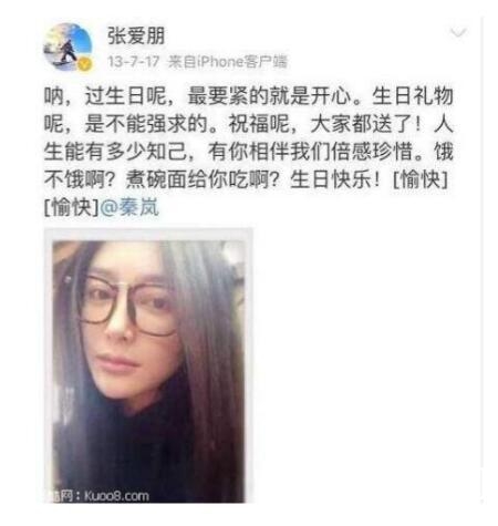 而且更搞笑的是,张爱朋还曾经在微博上暧昧艾特过秦岚,祝她生日快乐。