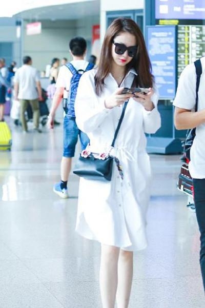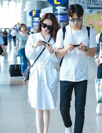 四爷吴奇隆和小仙女刘诗诗,大包小包都由四爷拿,诗诗玩手机好潇洒。