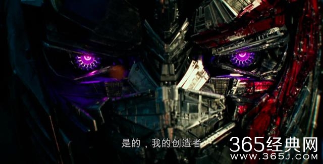 这些“造物主”的代表:一个飘在空中的小变形金刚不知道用什么形式给擎天柱洗脑了,让他认为之前地球的毁灭都是因为自己而造成的,效忠造物主才能救赎自己。蓝蓝的机械眼突然变紫色,延续着之前我们在预告中看到的事情,擎天柱背叛了,要伤害自己家人了。