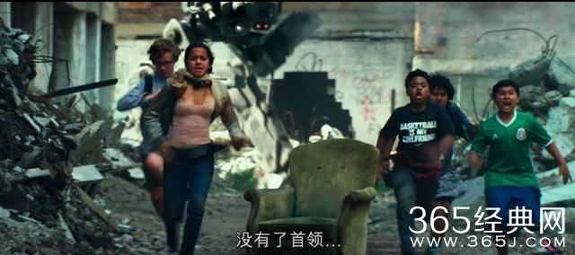 接着在棒球场镜头中的几个孩子,我们在之后的几个镜头中得知他们是伊莎贝拉的朋友,在帮她用改良的爆炸物干掉一些非霸天虎的机械反派,长得像《星球大战》中的AT-ST机器人。